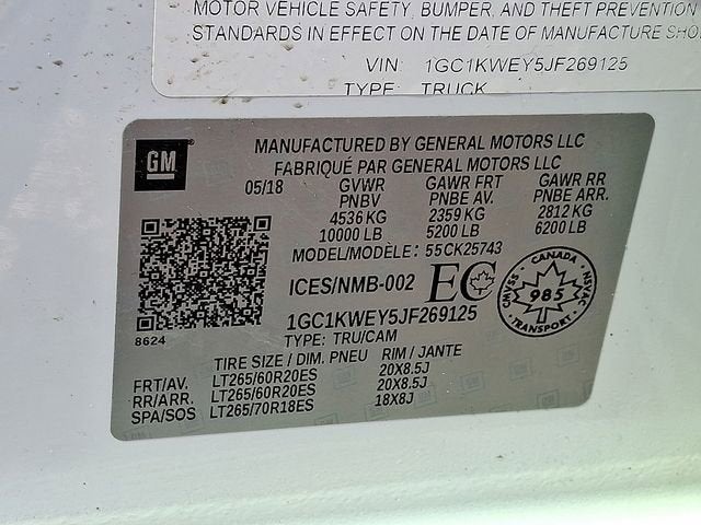 Certified. Summit White 2018 Chevrolet Silverado 2500HD LTZ 4WD Allison 1000 6-Speed Automatic Duramax 6.6L V8 Turbodiesel Local Trade, Clean Carfax, Non Smoker, New Tires, Allison 1000 6-Speed Automatic, 4WD, Leather, Standard Suspension Package, Trailering Equipment.Recent Arrival! Odometer is 52009 miles below market average!Certification Program Details: With CarBravo, every vehicle comes with a standard limited warranty,* 24-hour roadside assistance,* courtesy transportation* and a 10-day/500-mile vehicle exchange program.* Awards:* 2018 KBB.com 10 Most Awarded Brands